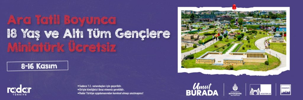İBB Kültür AŞ’ye bağlı Miniatürk, 8–16 Kasım 2025 tarihleri arasında ara tatil dolayısıyla 18 yaş ve altı T.C. vatandaşlarına ücretsiz giriş imkânı sunuyor.