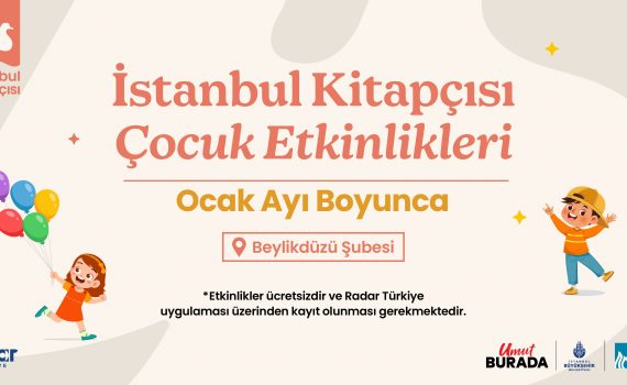 İstanbul Kitapçısı Beylikdüzü şubesi, ocak ayında çocukları hayal gücünü besleyen, üretmeye ve keşfetmeye davet eden renkli etkinliklerle buluşturuyor. Ay boyunca düzenlenecek atölyeler ve sahne performansları, minik ziyaretçilere dolu dolu bir program sunuyor.