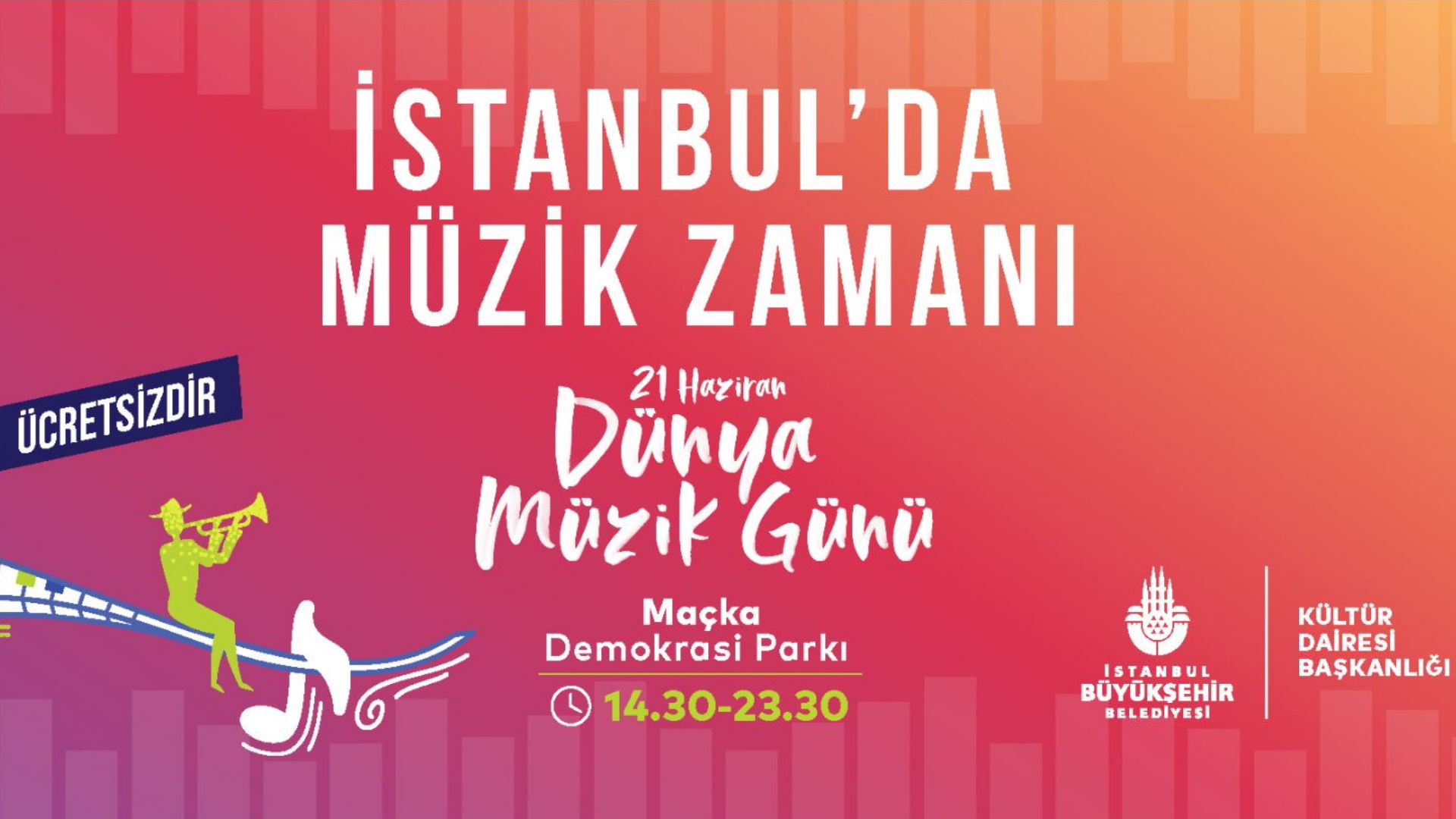 Maçka Demokrasi Parkı’nda 21 Haziran Salı günü tüm gün sürecek Dünya Müzik Günü etkinliklerine tüm İstanbullular davetli.