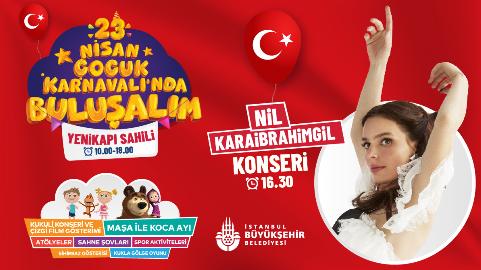 Kukuli, Maşa ile Koca Ayı, Arı Maya gibi sevilen karakterlerin gösterilerinden film gösterimlerine ve konserlere kadar bir dizi etkinliğin yer alacağı karnavalda, Nil Karaibrahimgil de çocuklarla buluşacak. Ücretsiz gerçekleşecek etkinliklerle ilgili detaylara buradan ulaşabilirsiniz.