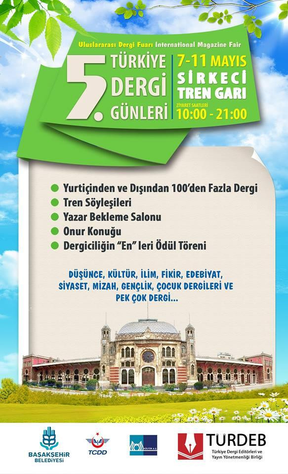 Kısa adı TÜRDEB olan Türkiye Dergi Editörleri ve Yayın Yönetmenleri Birliği tarafından düzenlenen Dergi Fuarı’nın 5’incisi, 7 Mayıs Çarşamba günü saat 12.00’de Sirkeci Garı’nda başlıyor.