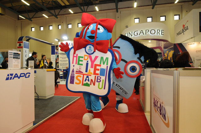 İstanbul Kitapçısı ve Hediyem İstanbul’un maskot adamları, ziyaret ettiği fuar stantlarında da büyük bir ilgi ile karşılandı ve ülke stantlarının müzikli eğlencelerine de eşlik etti.