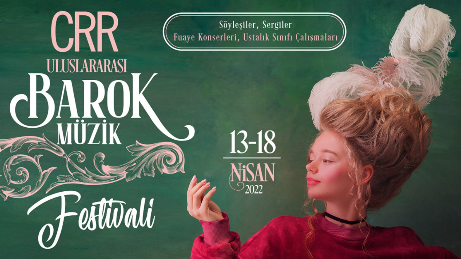 CRR Uluslararası Barok Müzik Festivali 13 Nisan’da başlıyor. Festival kapsamında, konserlerin yanı sıra; söyleşi, sergi, ücretsiz fuaye konserleri, dans gösterisi ve ustalık sınıfı çalışmaları da sanatseverleri bekliyor.