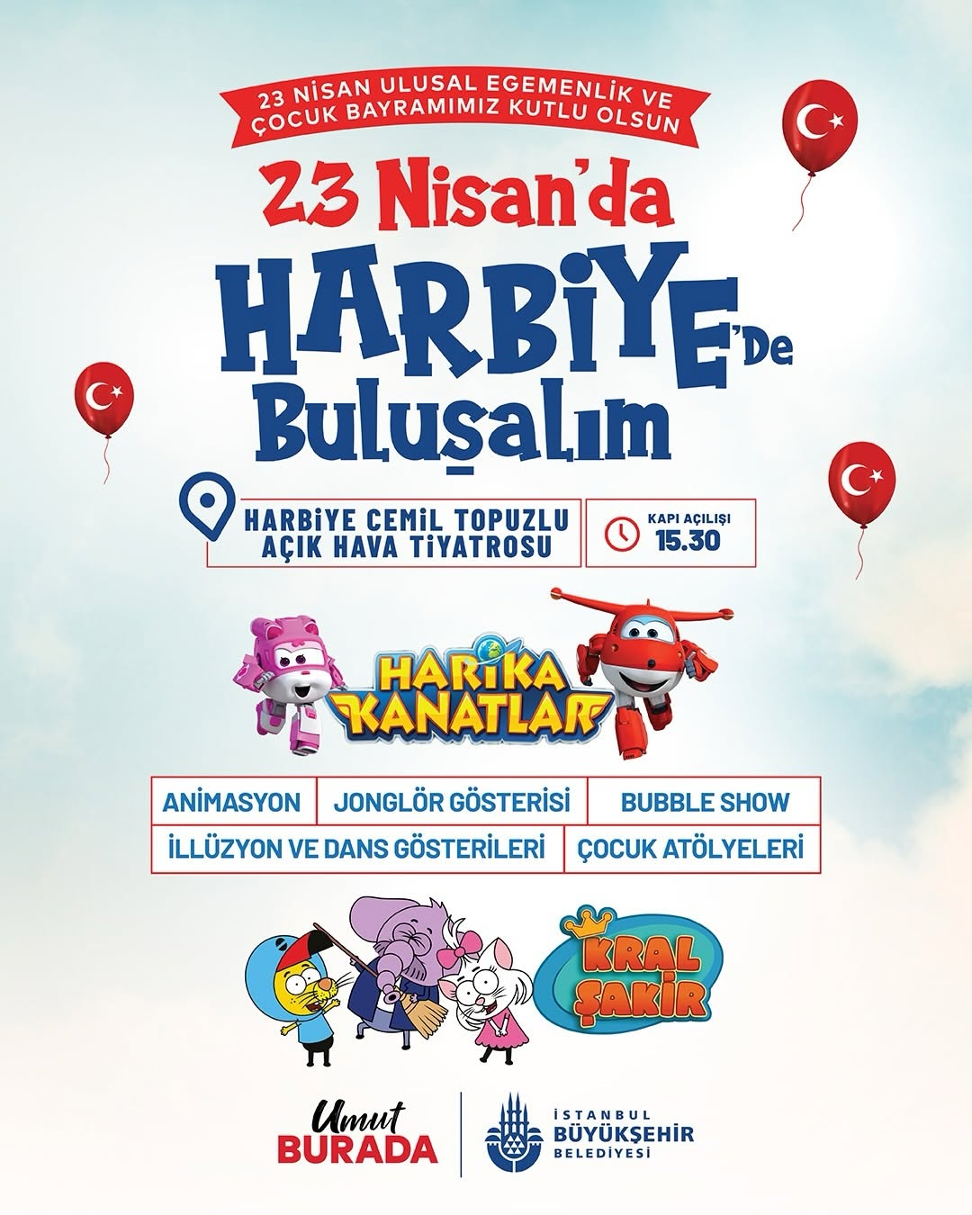 23 Nisan Ulusal Egemenlik ve Çocuk Bayramı’nda Harbiye Cemil Topuzlu Açık Hava Tiyatrosu çocuklar için dopdolu bir şölene dönüşüyor.