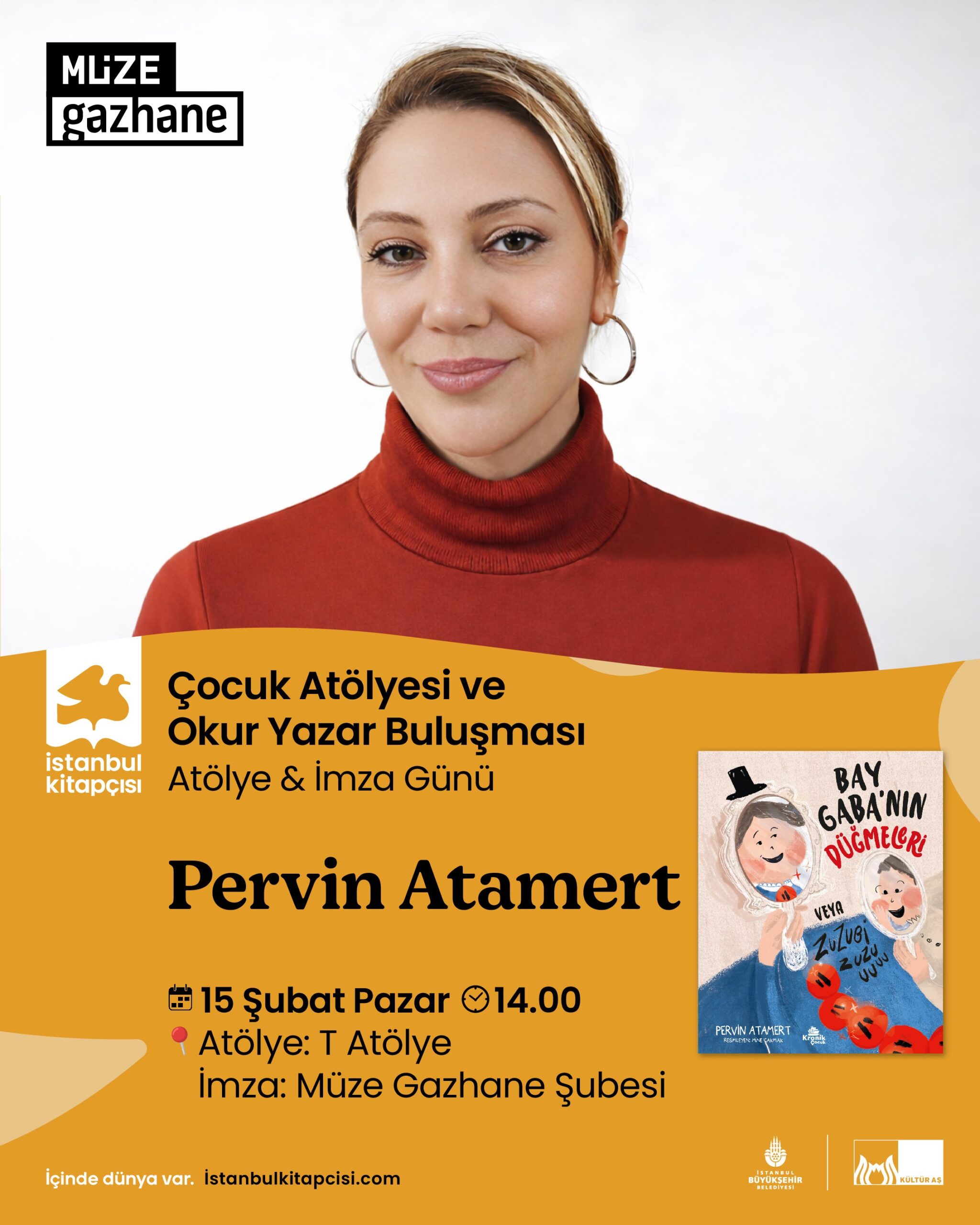 İstanbul Kitapçısı Müze Gazhane şubesi, çocukları yaratıcı bir atölye deneyimi ve yazar buluşmasıyla bir araya getiriyor. Yazar Pervin Atamert ile gerçekleşecek çocuk atölyesi, minik katılımcılara keyifli ve üretken bir deneyim sunarken; etkinlik sonunda düzenlenecek okur-yazar buluşması ve imza günü ile okuyucular yazarla bir araya gelme fırsatı yakalayacak.