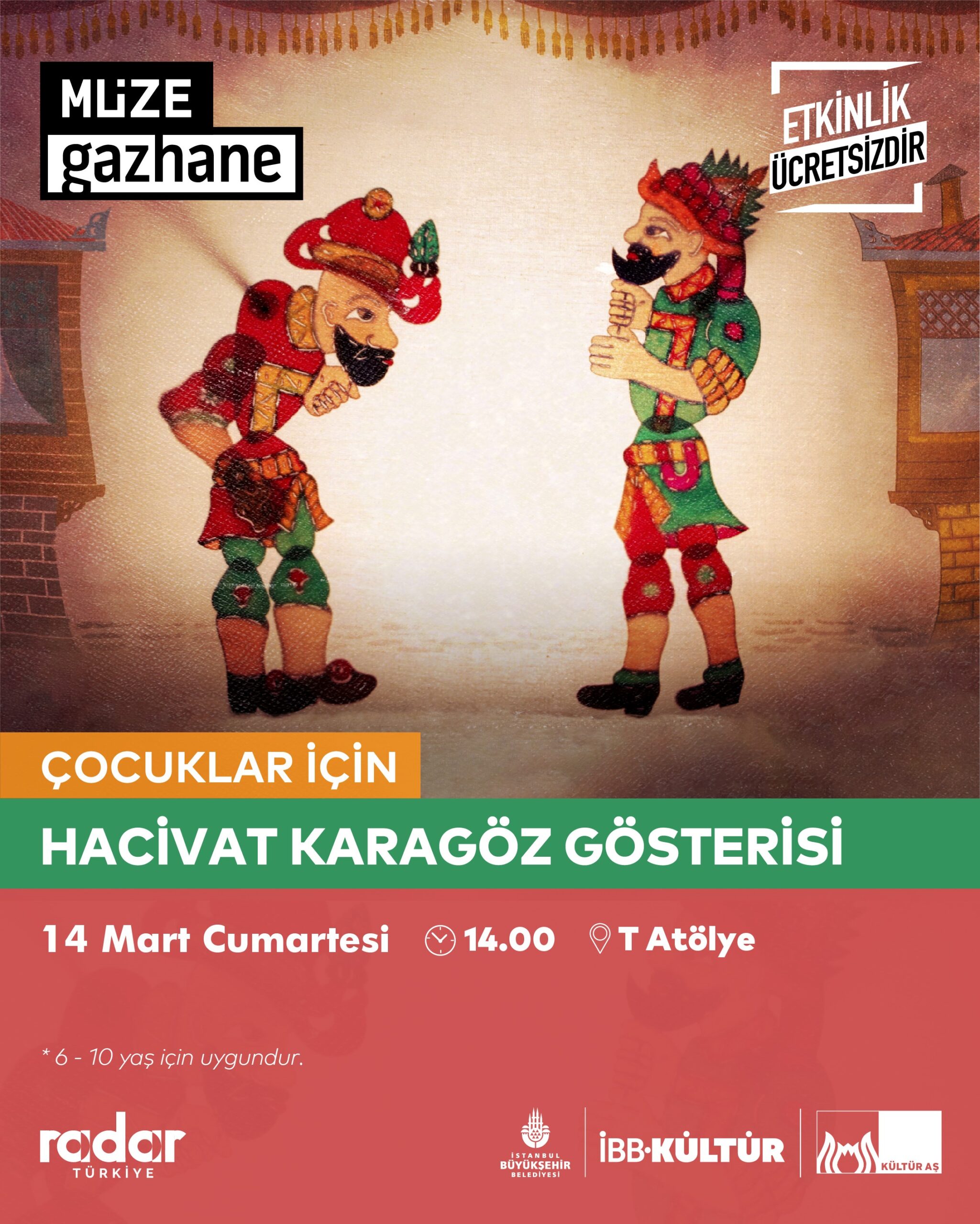 Müze Gazhane’de çocuklar, geleneksel gölge oyununun sevilen kahramanları Hacivat ve Karagöz ile buluşuyor.