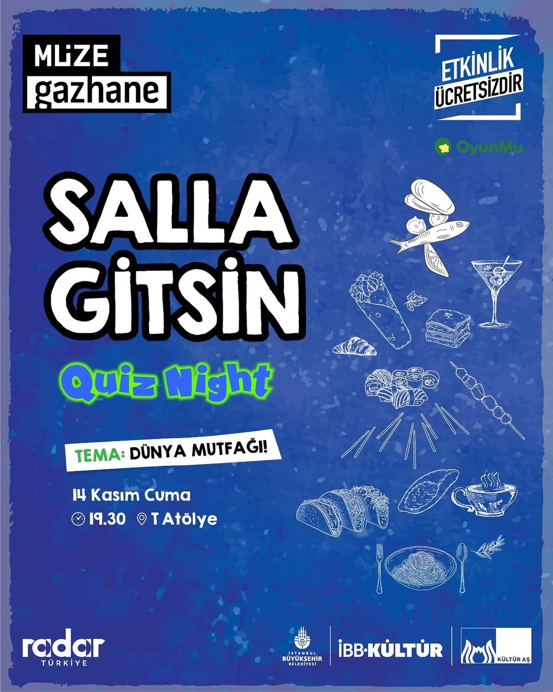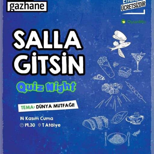 Salla Gitsin – Quiz Night etkinliğimizle bilgi ve eğlencenin kesişim noktasında yine Müze Gazhane’de buluşuyoruz! Bu haftaki temamız Dünya Mutfağı olacak. Farklı […]