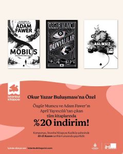 Okur Yazar Buluşması’na özel olarak10 – 15 Kasım tarihleri arasında Adam Fawer’ın April Yayıncılık’tan çıkan tüm kitapları İstanbul Kitapçısı Kadıköy şubesinde %20 indirimli olacak. Edebiyatla dolu bu özel buluşmayı kaçırmayın!