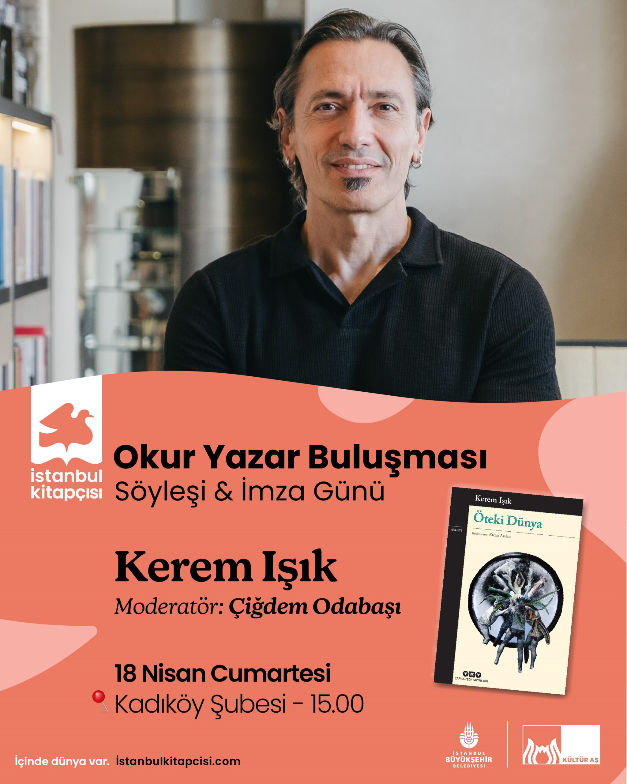 18 Nisan Cumartesi günü İstanbul Kitapçısı, yazar ve çevirmen Kerem Işık’ı ağırlıyor. Işık’ın “Öteki Dünya” kitabı etrafında şekillenecek söyleşi, okurları yazarın dünyasına yakından bakmaya davet ediyor. Söyleşinin ardından gerçekleşecek imza günüyle buluşma devam ederken, etkinliğin moderatörlüğünü Çiğdem Odabaşı üstleniyor.