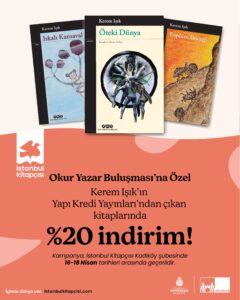 Okur Yazar Buluşması’na özel olarak 16 – 18 Nisan tarihleri arasında Işık’ın Yapı Kredi Yayınları’ndan çıkan kitapları İstanbul Kitapçısı Kadıköy şubesinde %20 indirimli olacak.