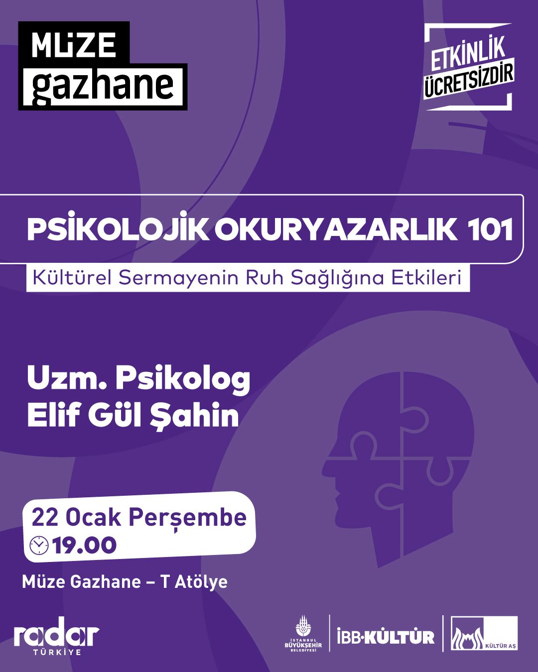 Sınırlı kapasiteyle gerçekleşecek etkinlik için 17 Ocak Cumartesi günü saat 16.00 itibarıyla Radar Türkiye üzerinden kayıt yapabilirsiniz.