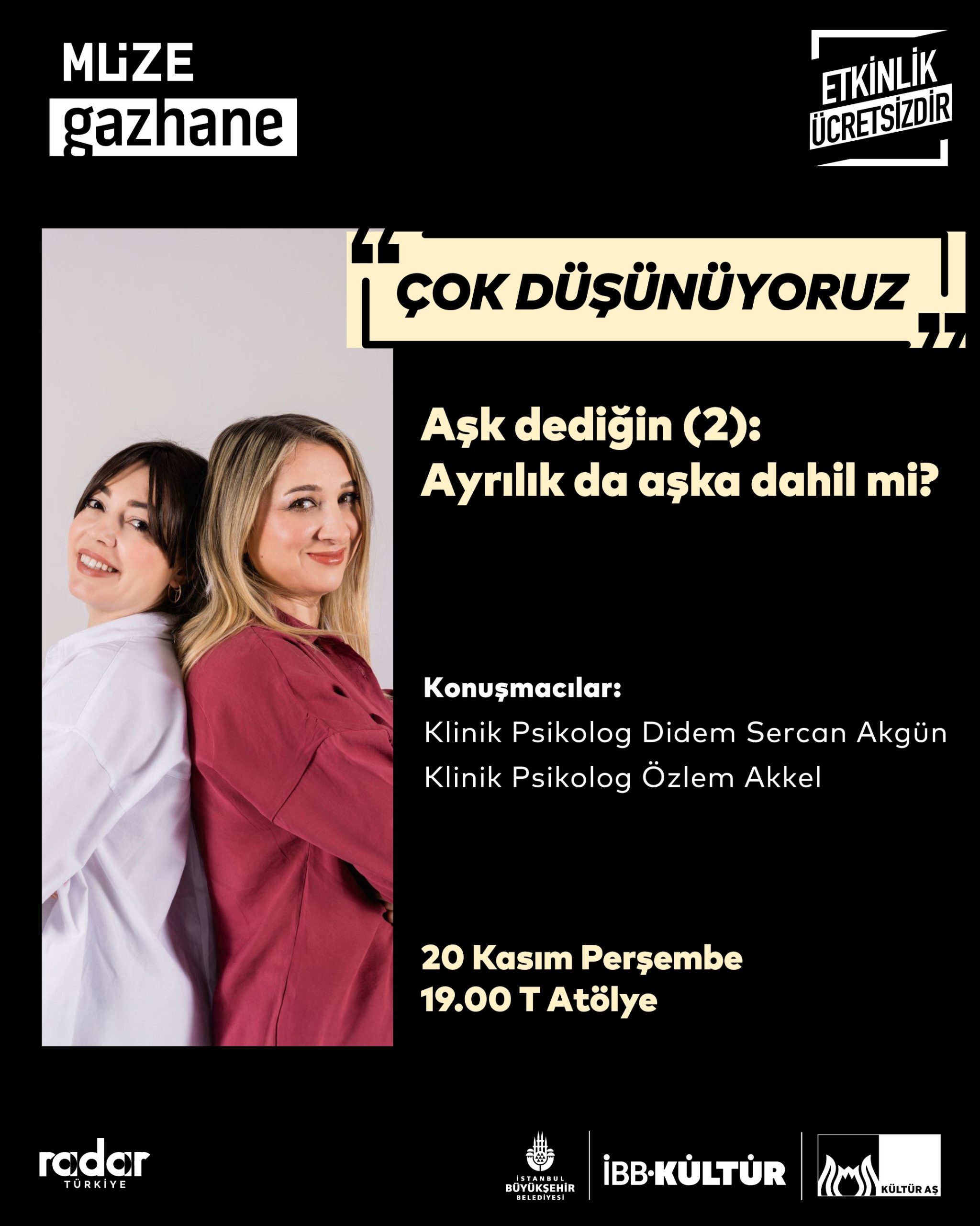 Sınırlı kapasiteyle gerçekleşecek etkinlik için 14 Kasım Cuma günü saat 18.00 itibarıyla Radar Türkiye mobil uygulama üzerinden kaydınızı yapabilirsiniz.