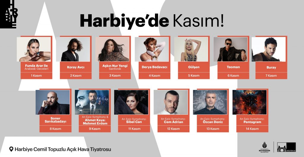 Pop, rock ve senfonik projelerden oluşan zengin kasım programı ile sezonu görkemli bir finalle tamamlayacak olan Harbiye Açık Hava, İstanbul’un kültür sanat hayatındaki vazgeçilmez yerini bir kez daha pekiştirmiş olacak.