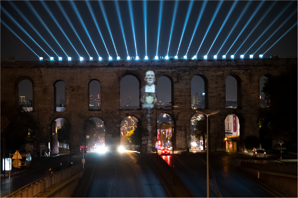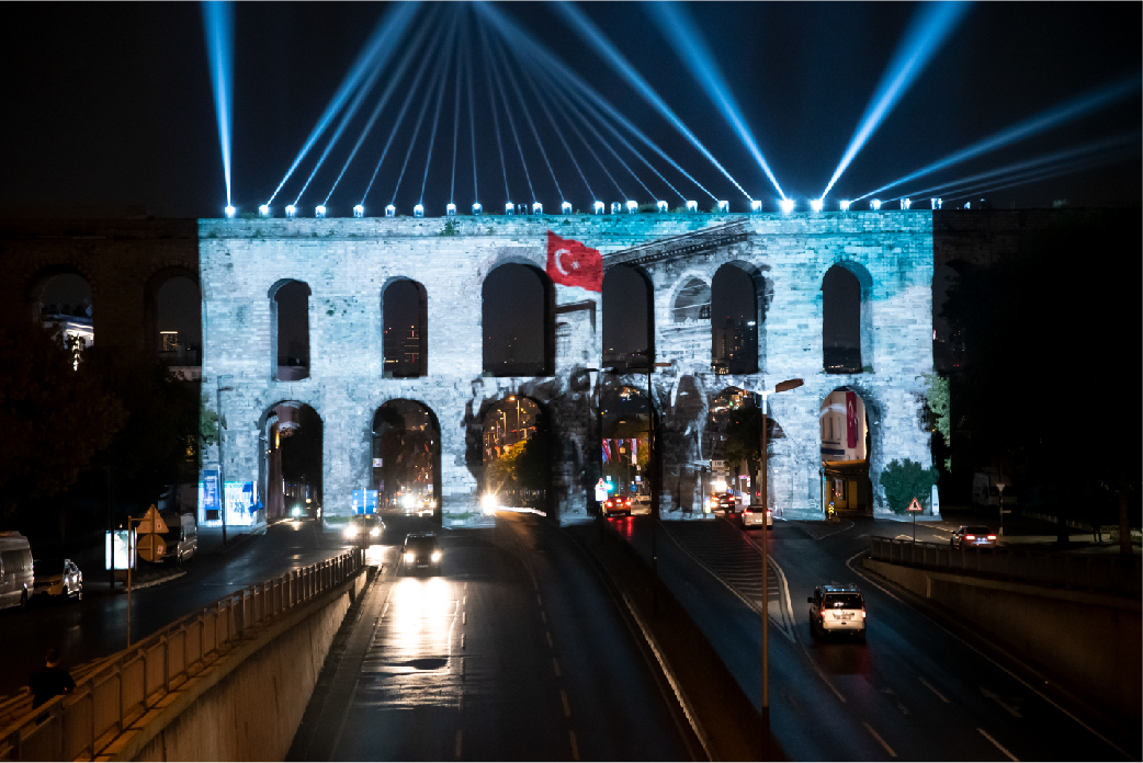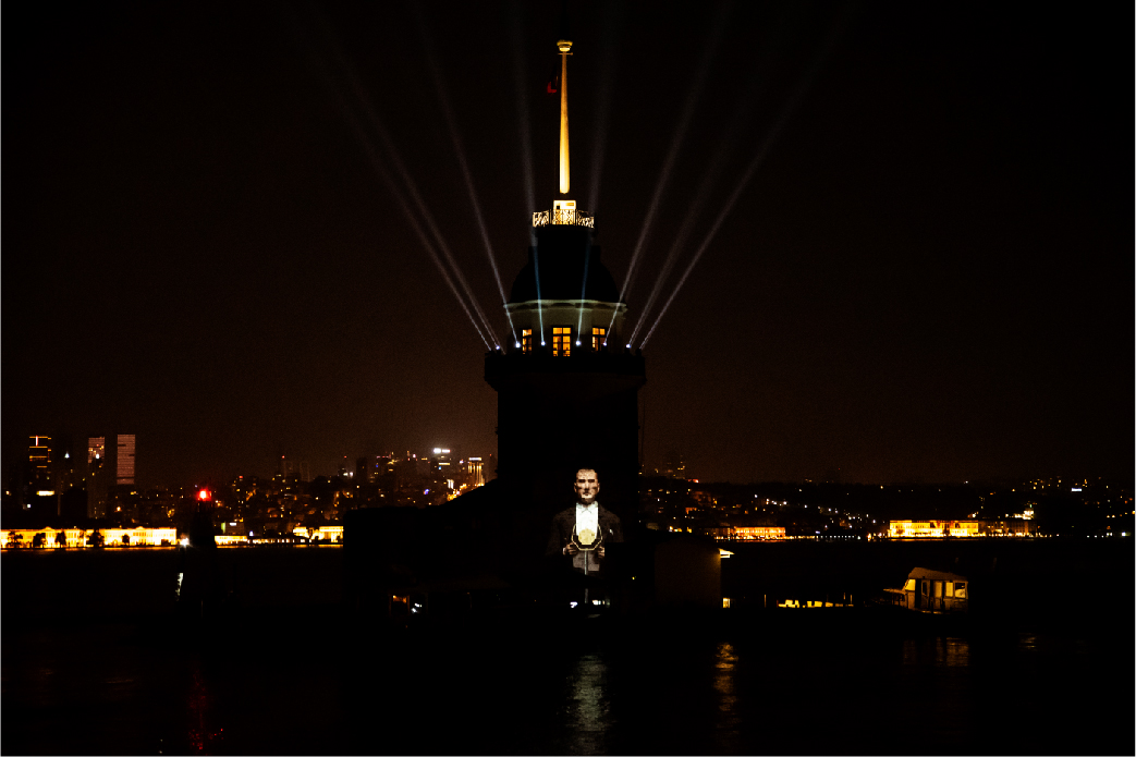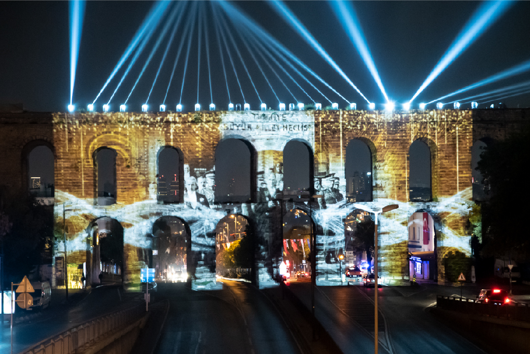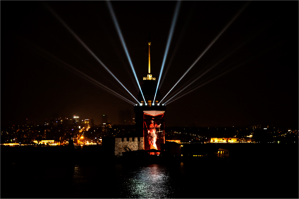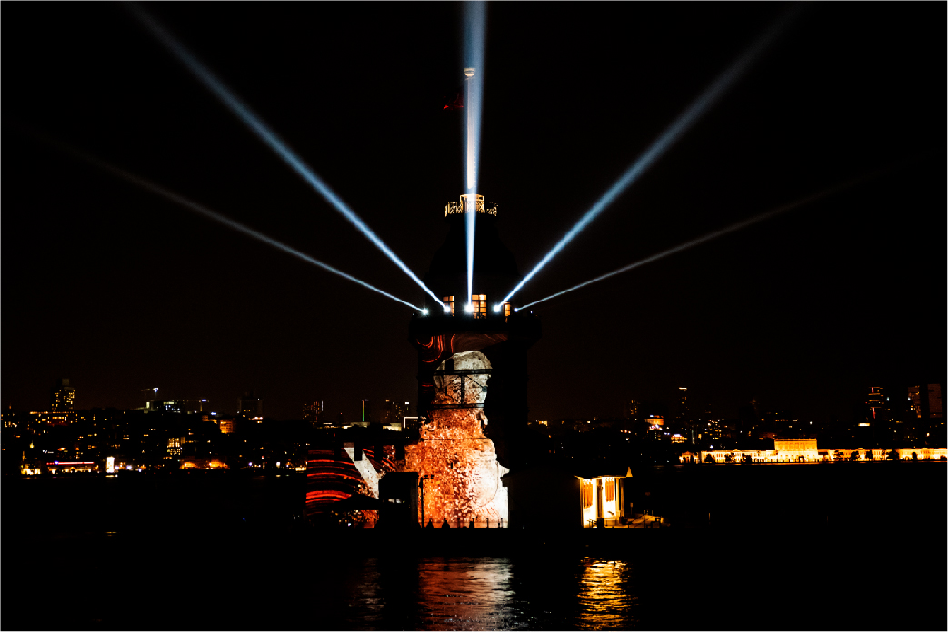 İBB tarafından organize edilen 29 Ekim Cumhuriyet Bayramı kutlamaları kapsamında yapılan ışık şovları ve mapping gösterimleri, Haliç Su Perdesi, İBB Saraçhane Binası, Bozdoğan Kemeri ve Kız Kulesi’nde tekrar ediliyor.