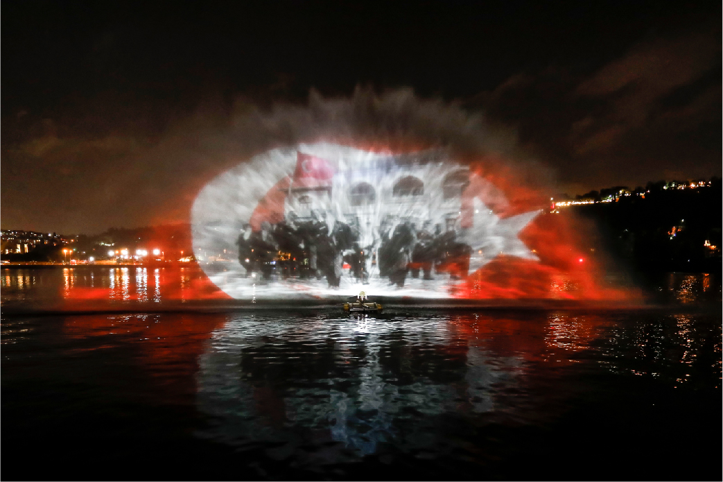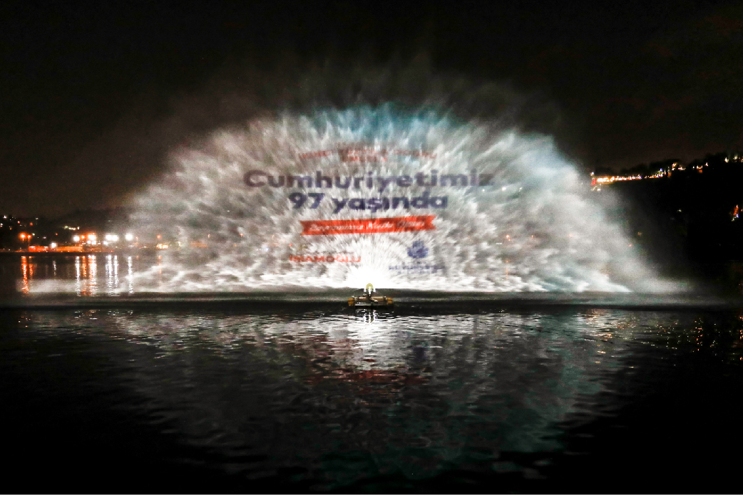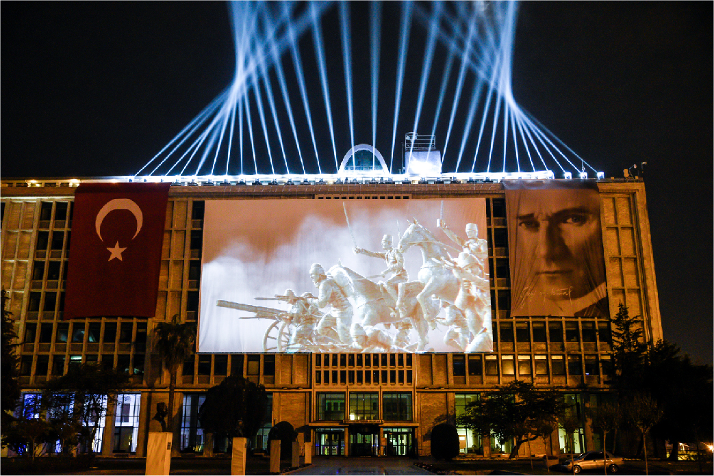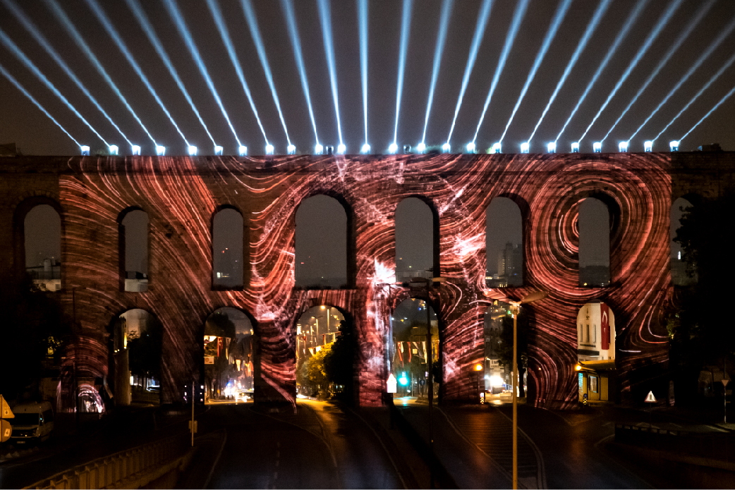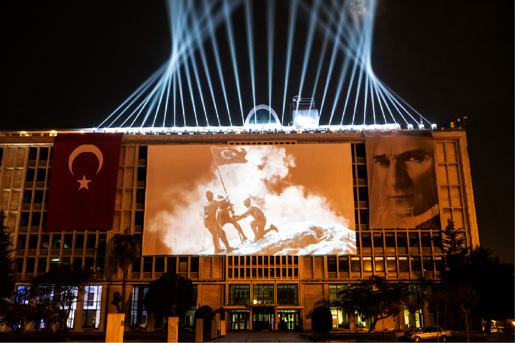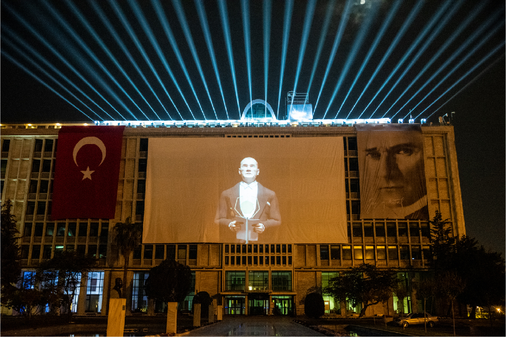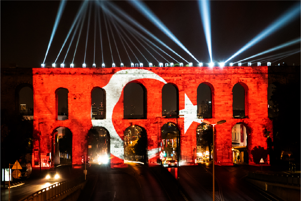 İBB tarafından organize edilen 29 Ekim Cumhuriyet Bayramı kutlamaları kapsamında yapılan ışık şovları ve mapping gösterimleri, Haliç Su Perdesi, İBB Saraçhane Binası, Bozdoğan Kemeri ve Kız Kulesi’nde tekrar ediliyor.