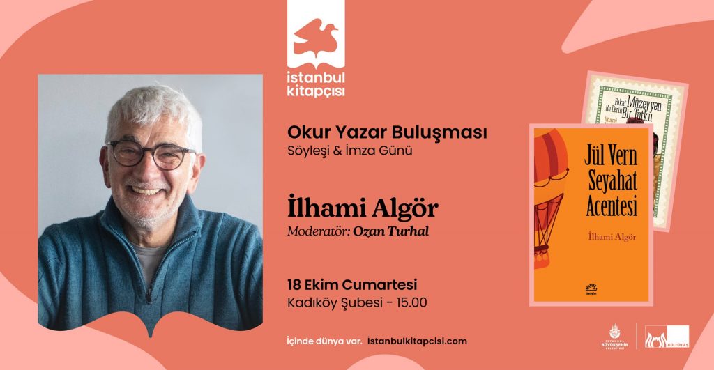 İstanbul Kitapçısı Kadıköy Şubesi, 18 Ekim Cumartesi günü edebiyatseverleri zamanın ve mekânların ötesine taşıyan özel bir buluşmaya davet ediyor. İlhami Algör, son kitabı “Jül Vern Seyahat Acentesi” ile okurları sıra dışı bir yolculuğa çıkaracak.