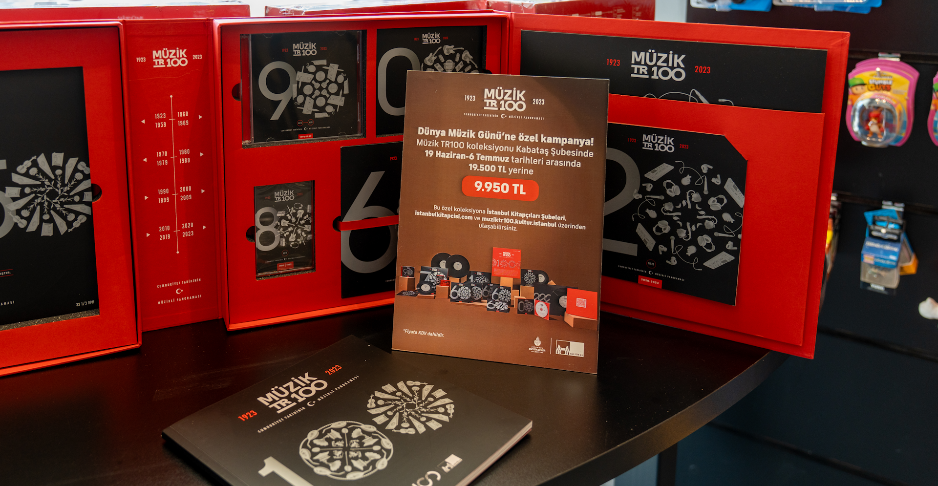 Ayrıca açılışa özel olarak Dünya Müzik Günü kapsamında İstanbul Kitapçısı Kabataş Şubesi’nde 19 Haziran- 6 Temmuz tarihleri arasında Müzik TR100 koleksiyonunu 19.500 TL yerine 9.950 TL indirimli fiyatıyla satın alabilirsiniz.