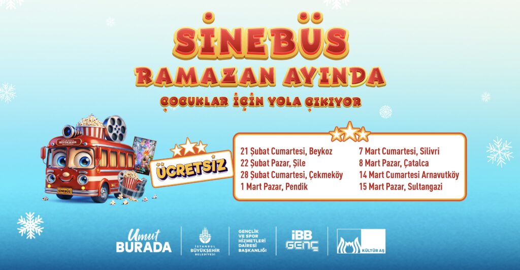 İstanbul’u ilçe ilçe dolaşarak çocukları sinema ile buluşturan SineBüs, Ramazan ayı boyunca yeniden yola çıkıyor. İstanbul Büyükşehir Belediyesi iştiraki Kültür AŞ organizasyonuyla hayata geçirilen proje kapsamında, kentin farklı ilçelerinde ücretsiz film gösterimleri minik sinemaseverlerle buluşacak.