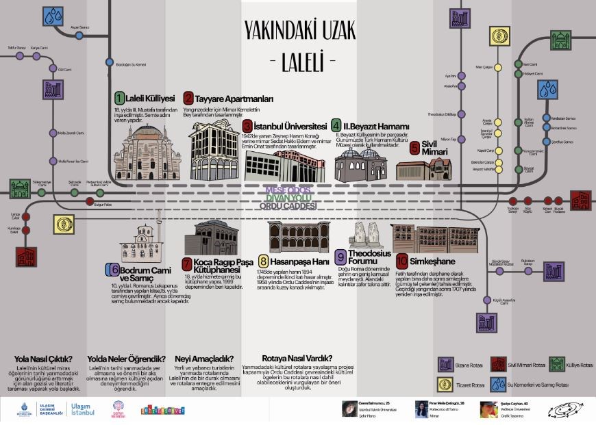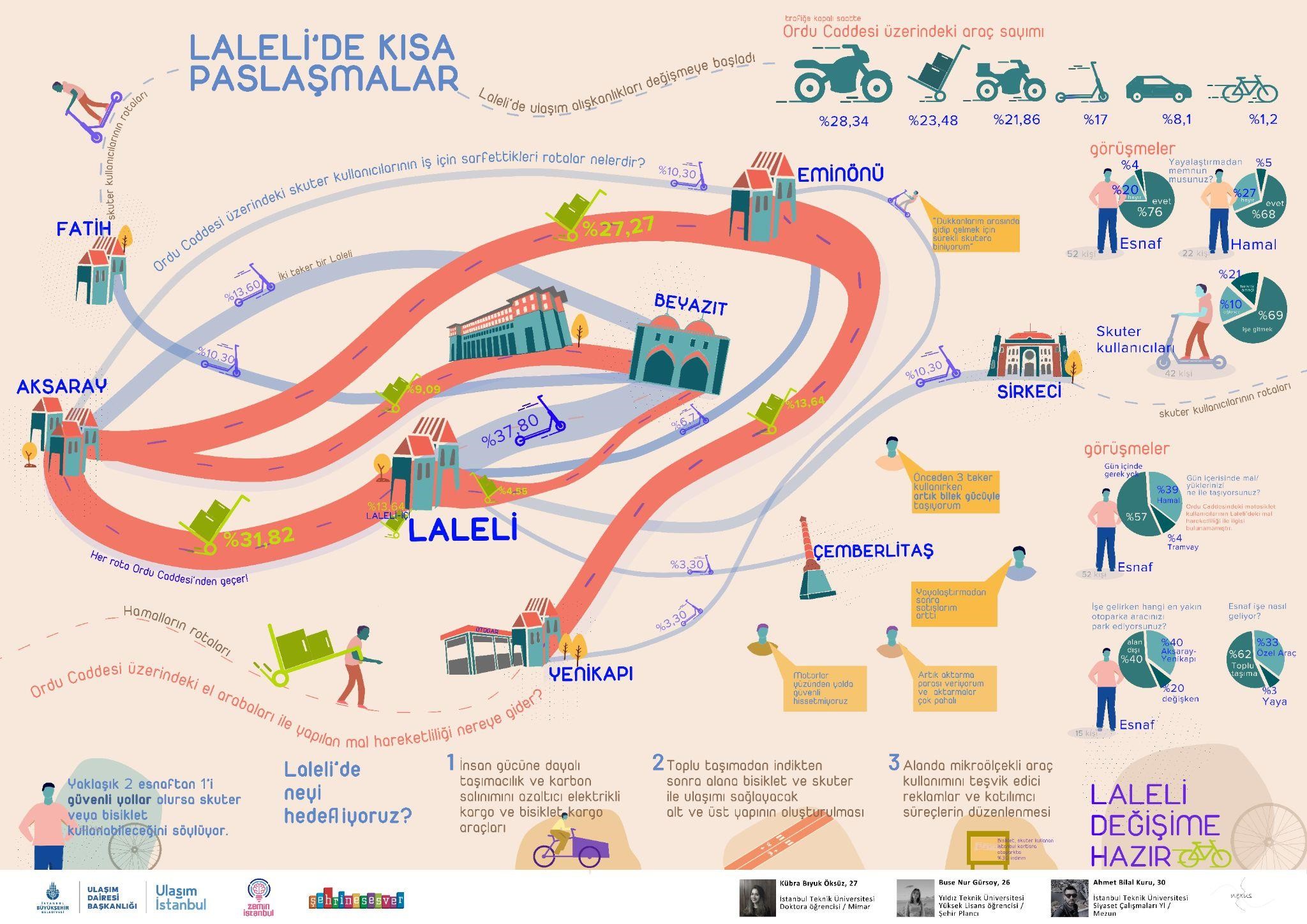 İstanbul Tarihi Yarımada’daki kapsayıcı yayalaştırma çalışmalarının paralelinde İBB Ulaşım Dairesi Başkanlığı, Ulaşım Planlama Müdürlüğü ve Şehrine Ses Ver iş birliği ile Ordu Caddesi ve çevresine yönelik düzenlenen Laleli Keşif ve Kentsel İnfografik Atölyesi çalışmalarını sonuçlandırdı.