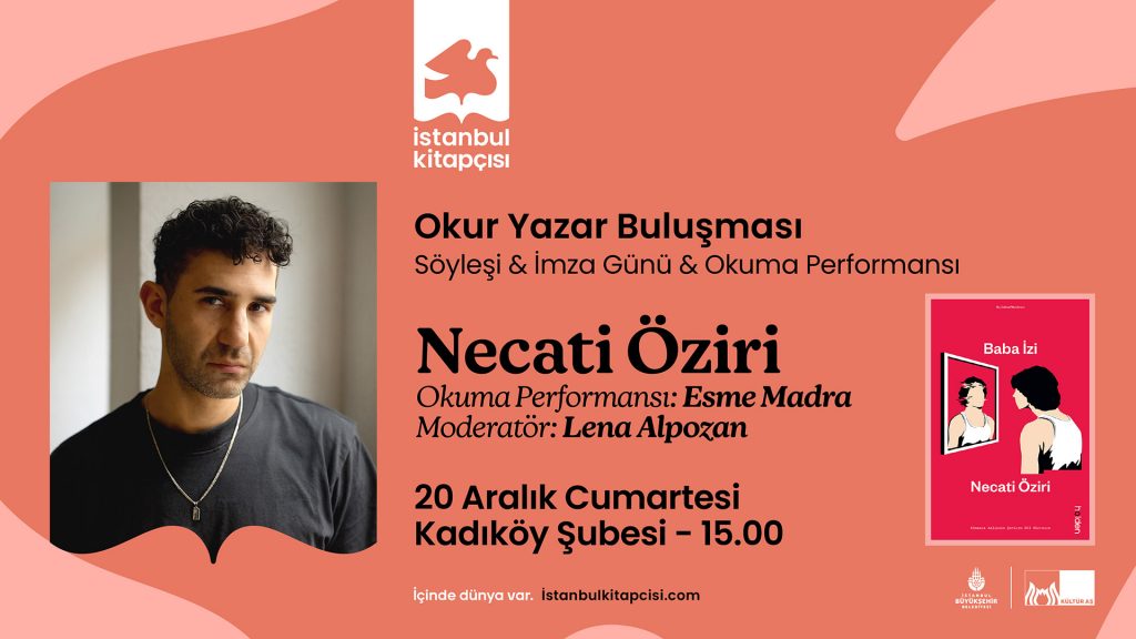 İstanbul Büyükşehir Belediyesi Kültür AŞ’nin İstanbul Kitapçısı Kadıköy şubesinde düzenlediği Okur Yazar Buluşması, edebiyatseverleri çağdaş edebiyatın farklı sesleriyle buluşturmaya devam ediyor. Etkinliğin bu haftaki konuğu Necati Öziri, 20 Aralık Cumartesi günü saat 15.00’te gerçekleşecek söyleşi ve imza gününde İstanbul Kitapçısı Kadıköy şubesinde okurlarla bir araya gelecek. Etkinlikte, söyleşiye Esme Madra’nın okuma performansı eşlik edecek.