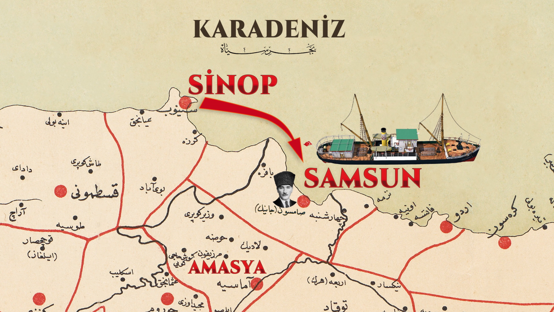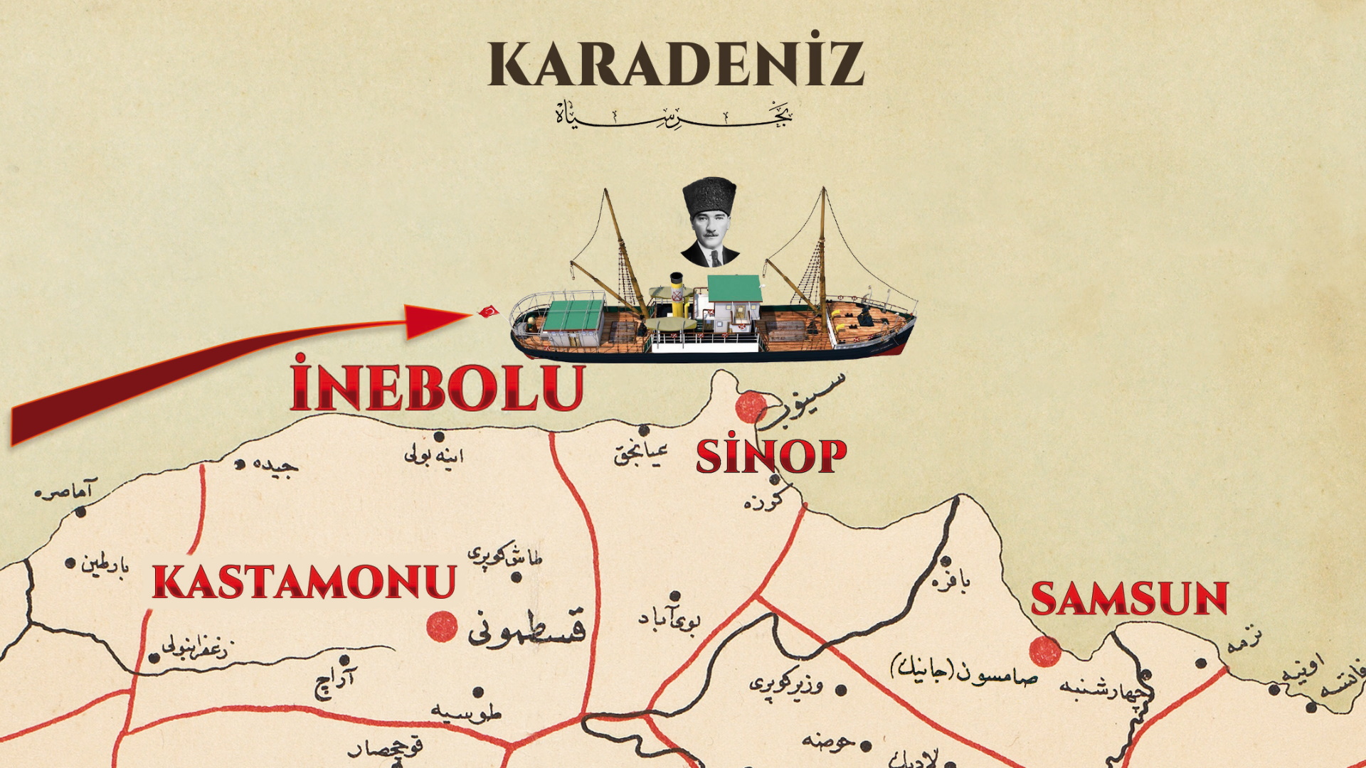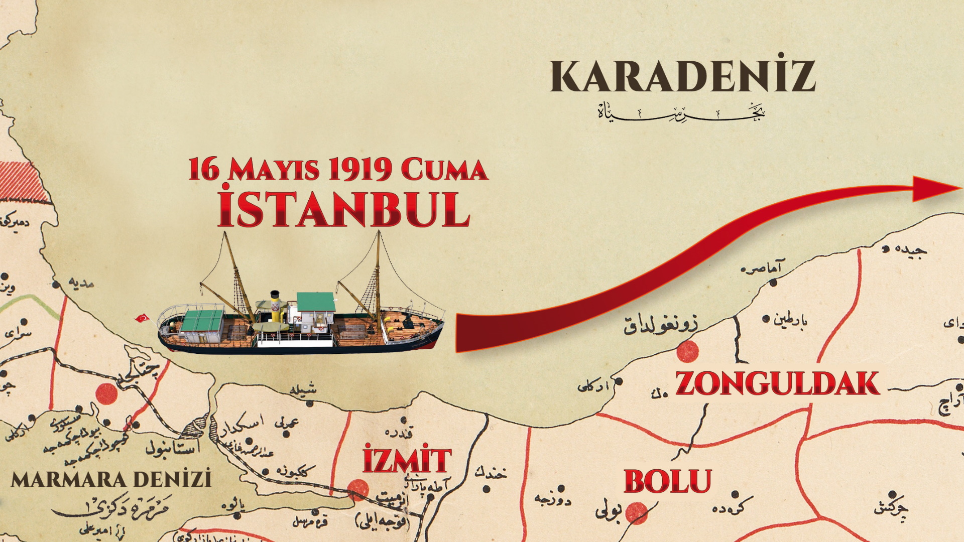 Mustafa Kemal Paşa’nın 16 Mayıs 1919’da İstanbul’dan hareketle Samsun’a çıktığı tarihi yolculuktan başlayarak Milli Mücadele sürecini gün gün ela alan Paşa’nın Rotası kitabından: İstanbul’dan Samsun’a.