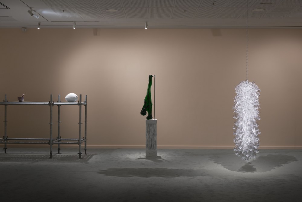 Sergilenen cam ve mermer heykeller, tarihi cam nesneler, arkeolojik buluntular ve göçebe geleneklerin el dokuması ipleriyle oluşan diyalog sayesinde farklı dönem ve kültürler arasında bağlar kuruyor. Sergi kurgusundaki ana ögelerden yapı iskelesi, ören yerlerinde bir dönemin görkemli binalarını destekleyerek geçmişin bugüne taşınmasını mümkün kılarken, bilinmeyen bir gelecek inşasının unsuru olarak da gündelik hayatta karşımıza çıkıyor.