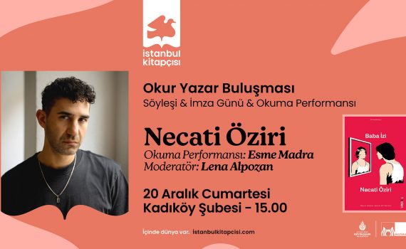 İstanbul Büyükşehir Belediyesi Kültür AŞ’nin İstanbul Kitapçısı Kadıköy şubesinde düzenlediği Okur Yazar Buluşması, edebiyatseverleri çağdaş edebiyatın farklı sesleriyle buluşturmaya devam ediyor. Etkinliğin bu haftaki konuğu Necati Öziri, 20 Aralık Cumartesi günü saat 15.00’te gerçekleşecek söyleşi, okuma performansı ve imza gününde İstanbul Kitapçısı Kadıköy şubesinde okurlarla bir araya gelecek.