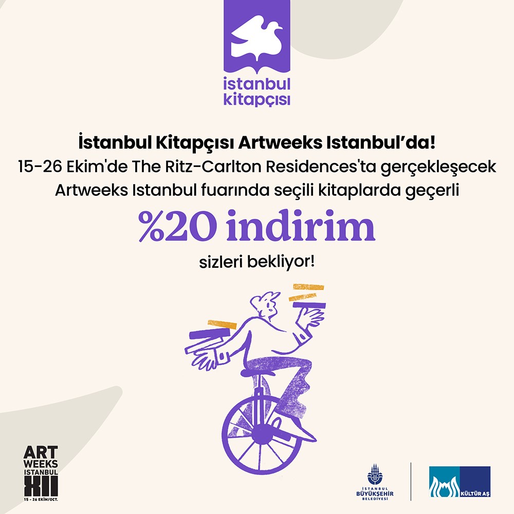 “İçinde dünya var” mottosuyla kitapseverlerin buluşma noktası olmaya devam eden İstanbul Kitapçısı, Artweeks Istanbul’a özel seçkisiyle katılımcıları bekliyor. Farklı yayınevlerinden özenle seçilmiş kitaplar, %20 indirimle satışa sunulacak.